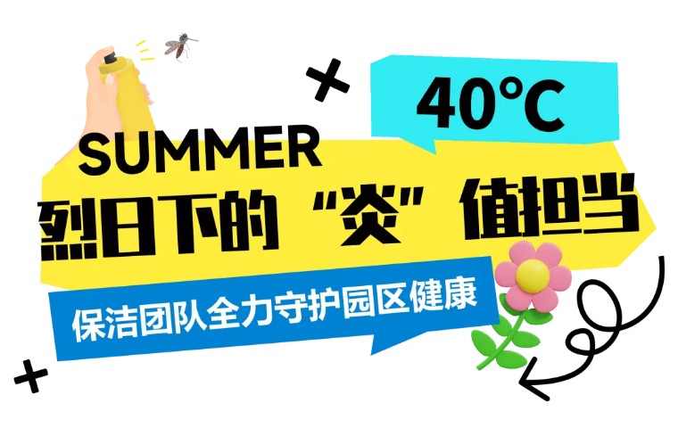 盛夏时节,草木生长旺盛,蚊虫繁殖迅速,园区绿化养护和消杀工作成为物业的重点任务。物业保洁团队每日清晨7点便开始作业,避开正午最炎热的时段,但即便如此,他们的工作服仍被汗水浸透。