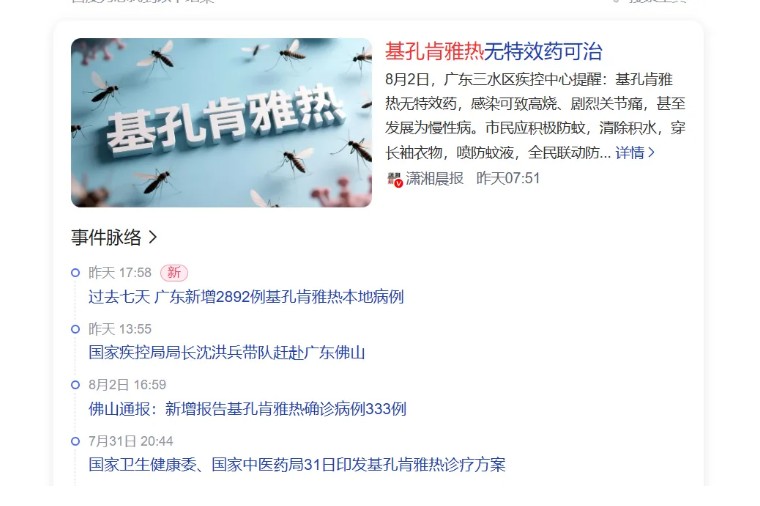 图丨网络上近期流传关于基孔肯雅热的新闻