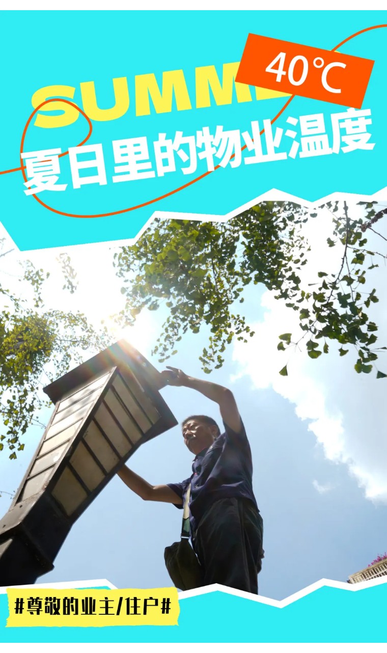 在这个酷暑难耐的夏天,物业人用汗水浇灌责任,用行动书写担当。他们或许是保洁员、工程师傅、秩序队员,但都有一个共同的名字——家园守护者。向高温下仍坚守岗位、努力为业主们创造安稳幸福生活的劳动者致敬!