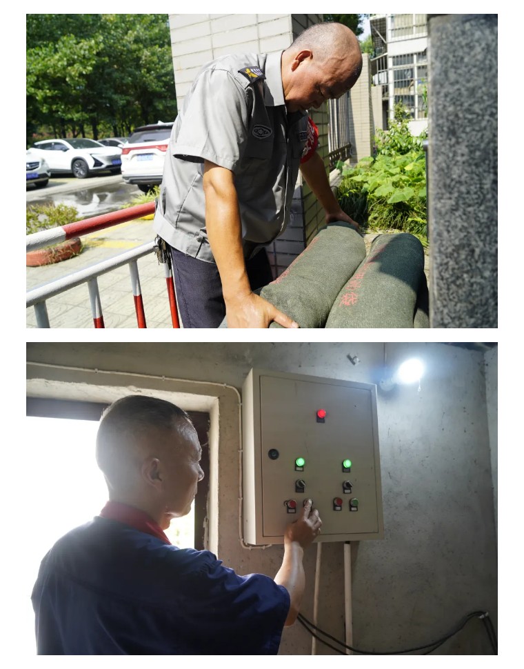 每周,工程人员会走进小区泵房,检查水泵是否能正常工作。“如果水泵故障,一场大雨就能让小区变成‘池塘’。”一位师傅边说边擦拭额头的汗水。此外,物业在设备房、车库出入口、身地处低洼地带的单元门口等重点区域常备好防汛沙袋,并定期检查是否破损、霉变,确保紧急时刻能迅速发挥作用。物业还清理了楼顶排水口、园区明沟,防止落叶杂物堵塞导致积水倒灌。