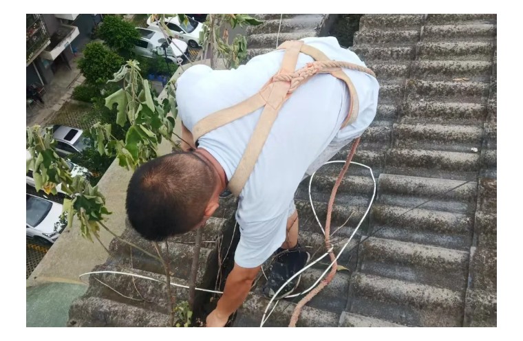 图丨回龙小区物业一线正在清理楼顶排水沟